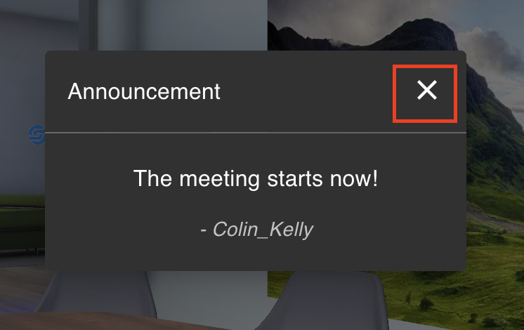 During the event, we'll be sending many broadcast announcements. Make sure to click the 'X' on each pop-up so you'll be ready to interact with other people and also be able to see the future announcements during the event.